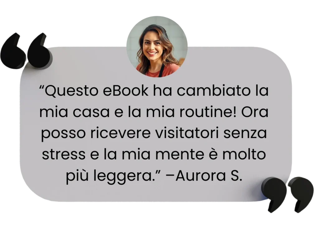 Sono stato nei tuoi panni. Ogni stanza sembrava una sfida e la sensazione che “non ce l’avrei mai fatta” era soffocante. Lo stress ha preso il sopravvento, la vergogna di ricevere visitatori era reale, e la cosa peggiore: il disordine dell’ambiente ha avuto un impatto diretto sulle mie emozioni.